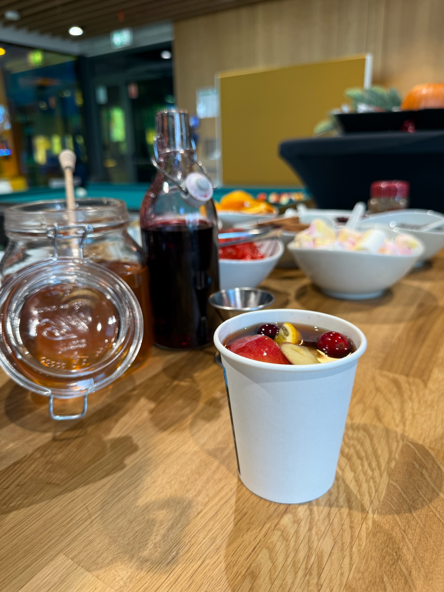 - Kubeczki termiczne, serwetki, dodatki (cytrusy, przyprawy, zioła)